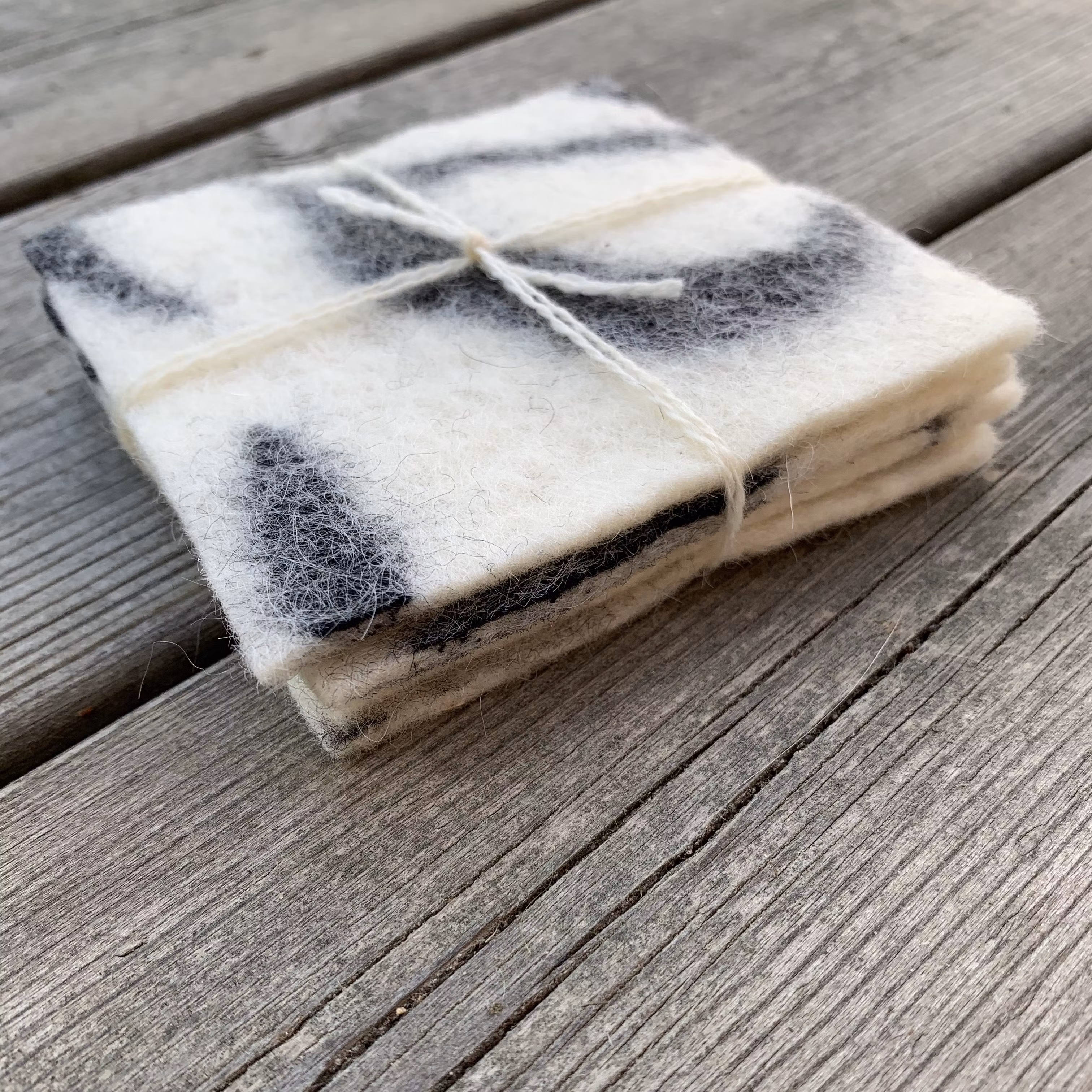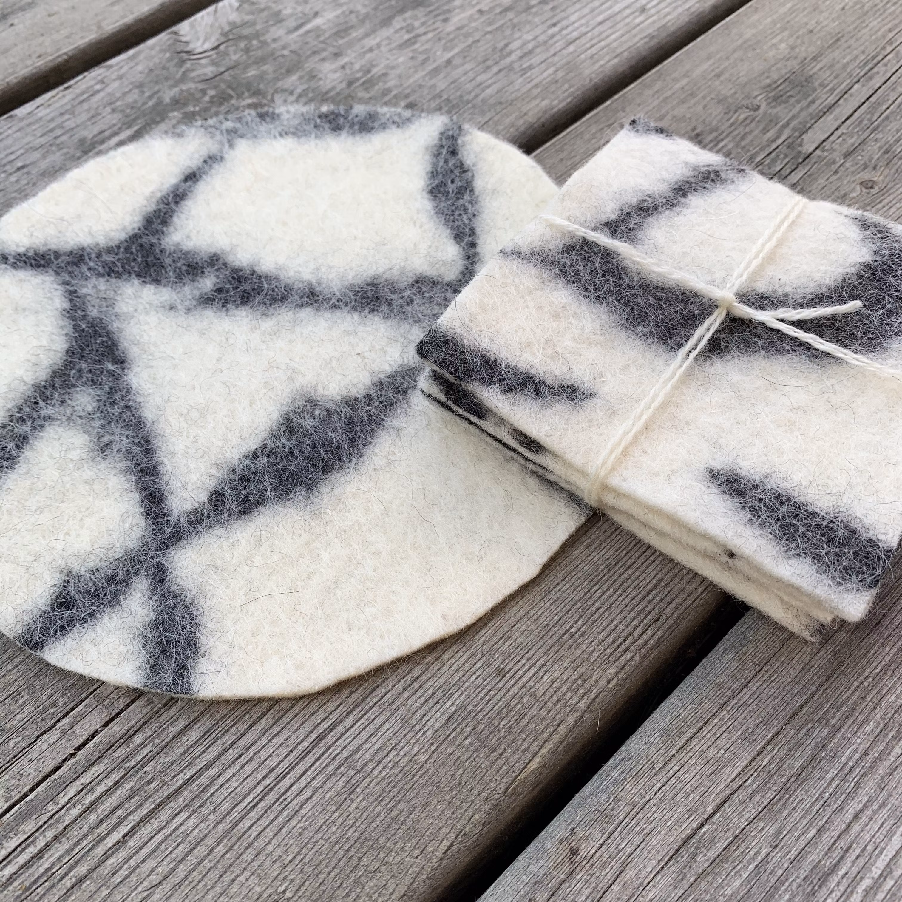 Glasunderlägg i "ullmarmor" och enfärgade. Paket med 4st.
