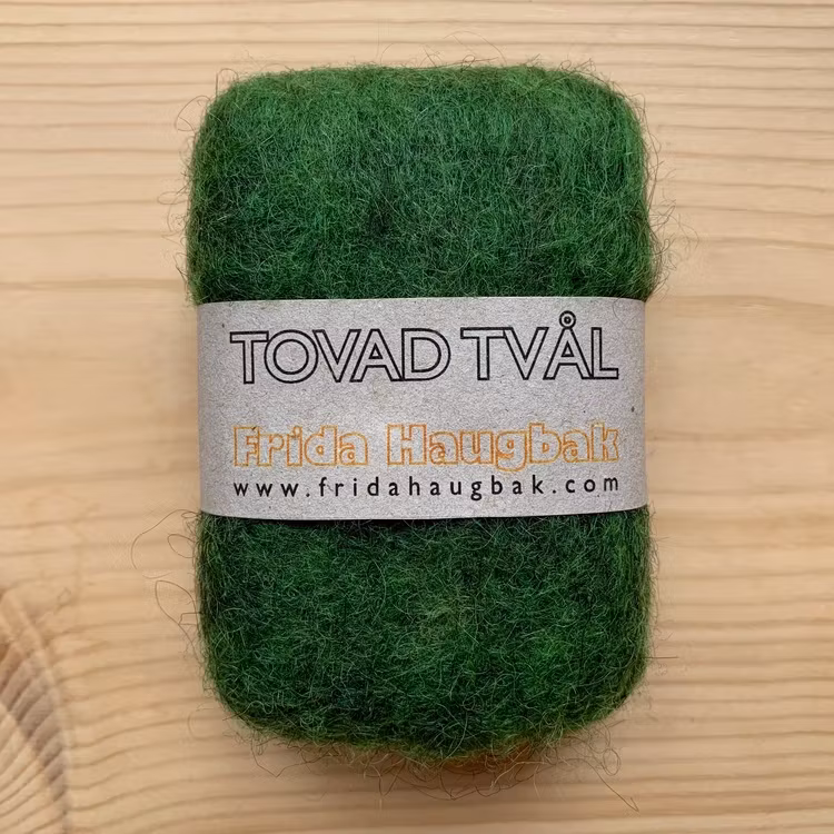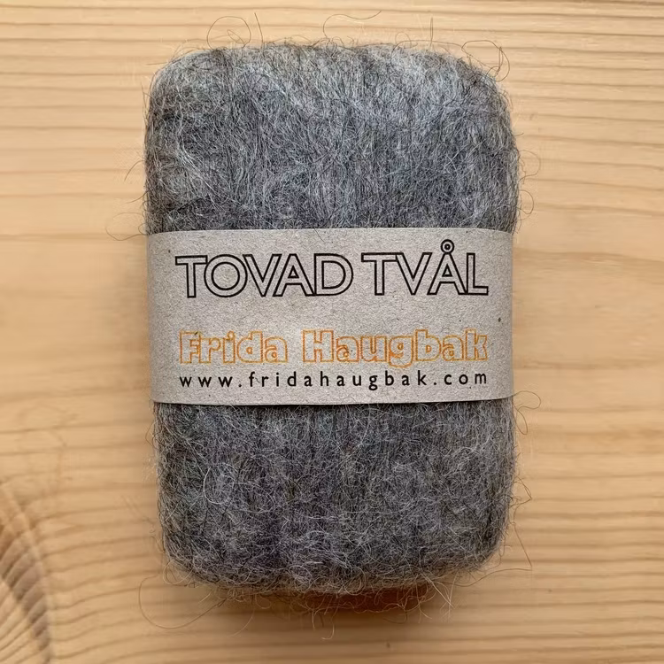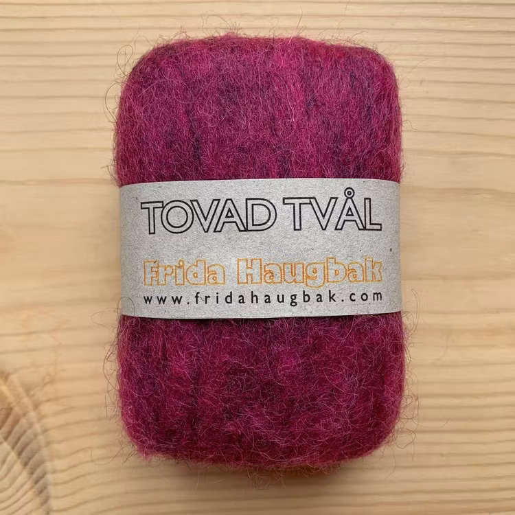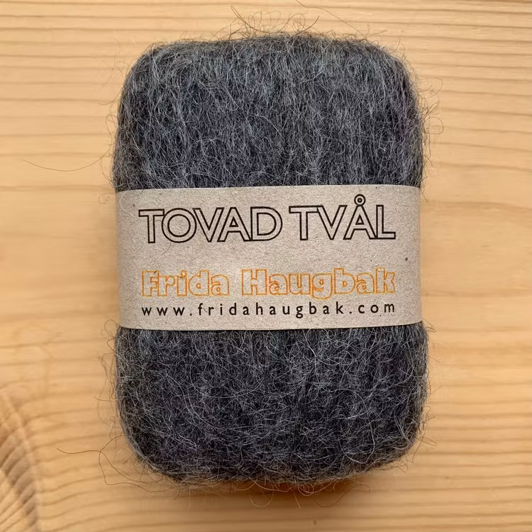 Den tovade tvålen fungerar som en härlig skrubb. Ullen runt tvålen gör att den räcker länge och dessutom används hela tvålen upp. Ullen krymper i takt med att tvålen används upp och kvar blir bara ullen, som kan sparas och användas med flytande tvål. Låt tvålen torka mellan användningarna för bästa hållbarhet. Ullen kan avge lite färg i början.