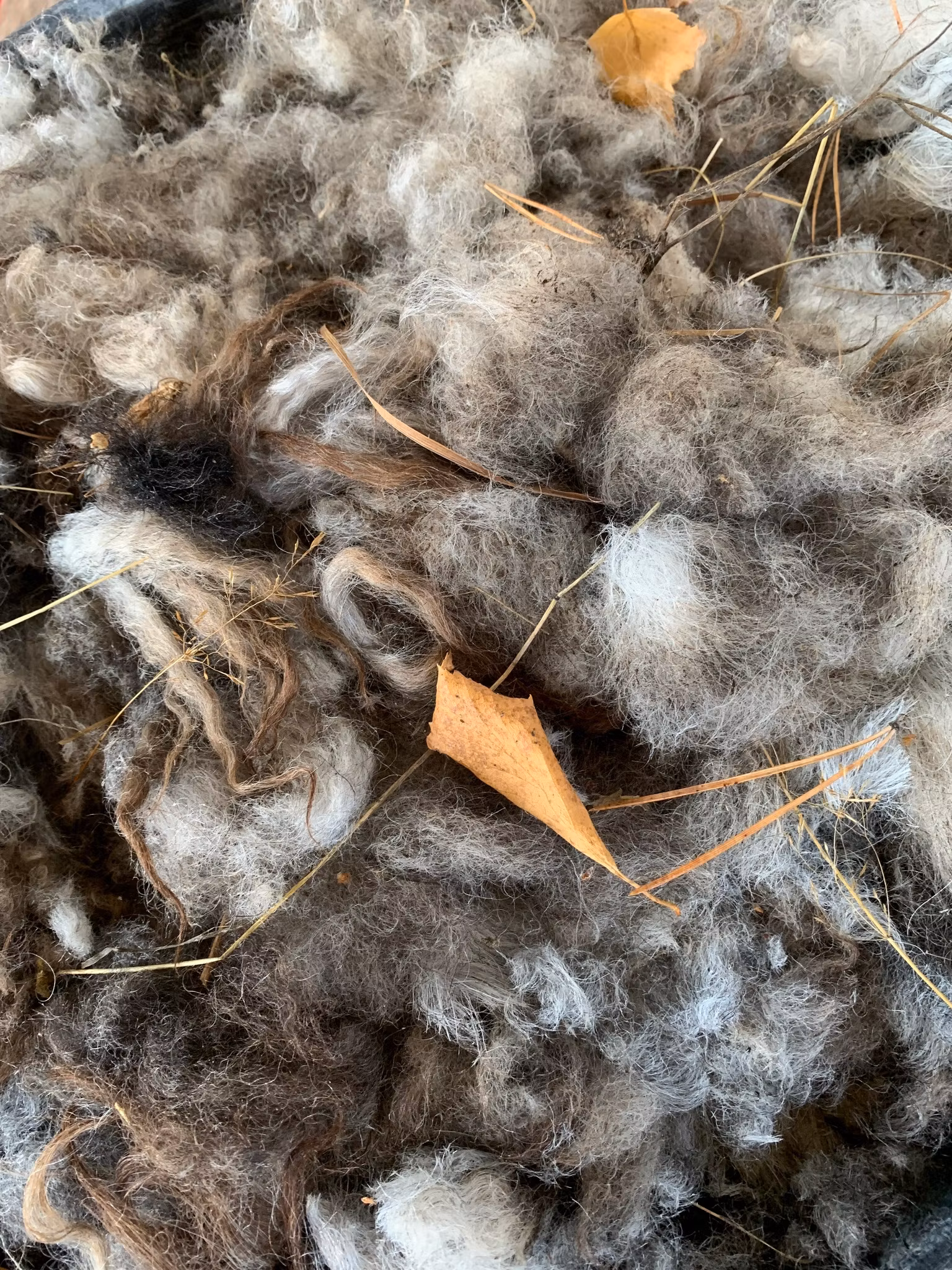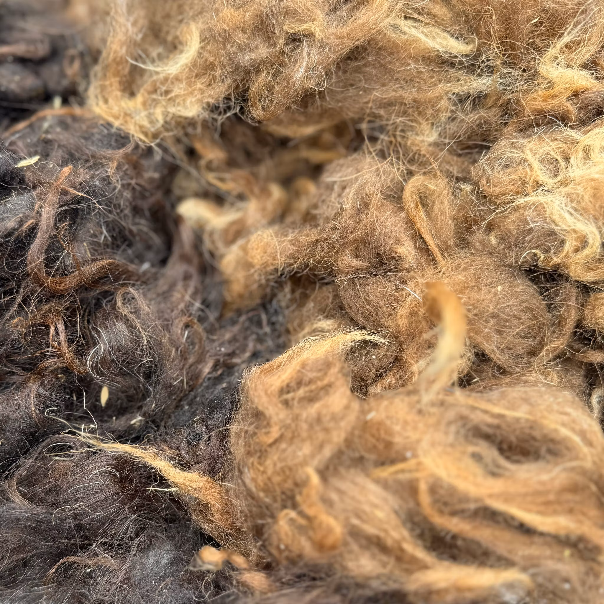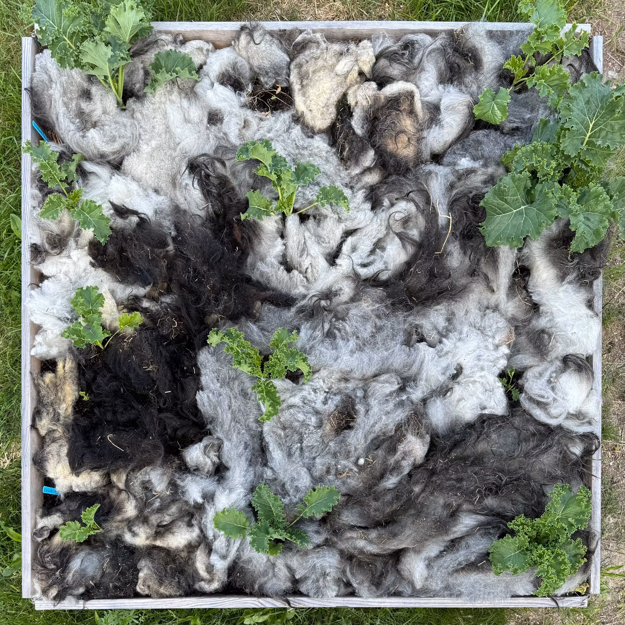 Trädgårdsull. Otvättad och skräpig ull som inte lämpar sig till hantverk.
